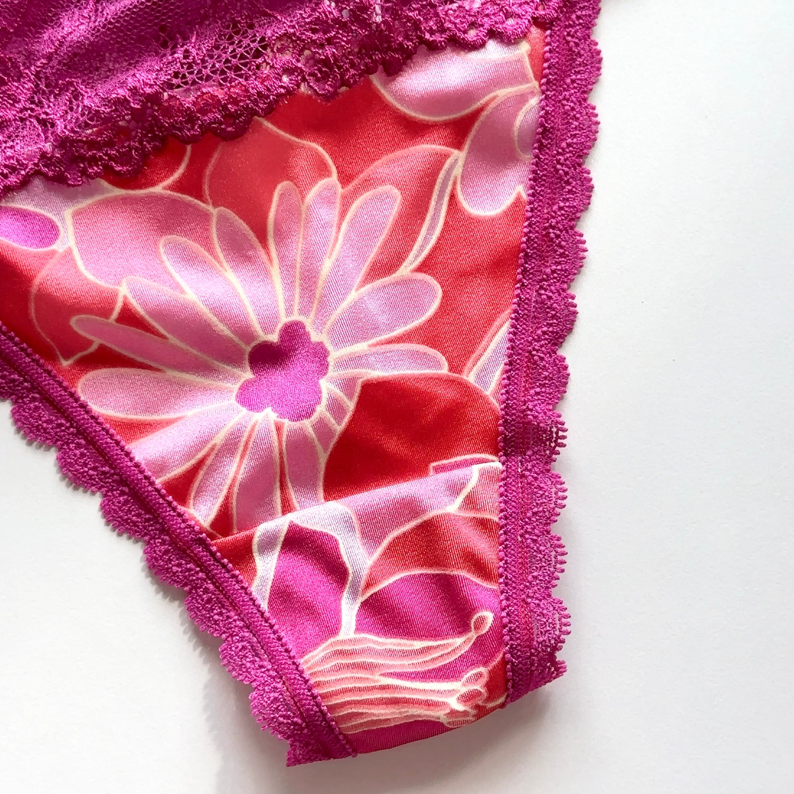 プリントとレースのthong